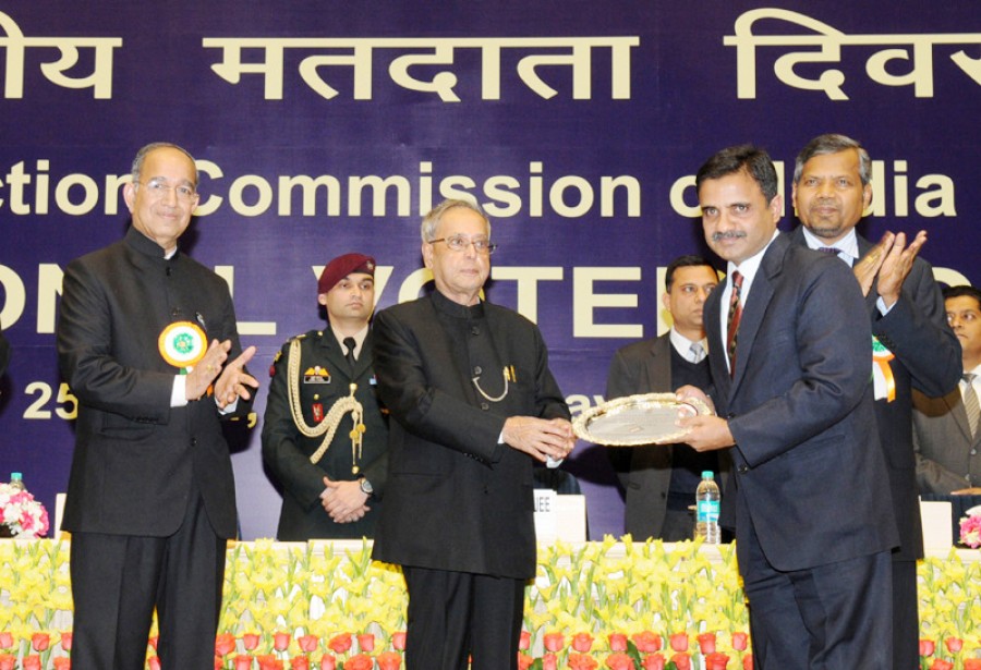 राष्ट्रीय मतदाता दिवस के अवसर पर नई दिल्ली के विज्ञान भवन में राष्ट्रीय समारोह की अध्यक्षता राष्ट्रपति प्रणब मुखर्जी ने की। राष्ट्रपति ने बेहतरीन निर्वाचन परिपाटियों के लिए राष्ट्रीय पुरस्कार प्रदान किए। इन पुरस्कारों में जिला चुनाव अधिकारियों, जिले के पुलिस अधीक्षक और जिले से बाहर के अधिकारियों के लिए विशेष पुरस्कार शामिल होते हैं। उत्कृष्ट राज्य का पुरस्कार 2013 के लिए दिल्ली, कर्नाटक, राजस्थान और त्रिपुरा को दिया गया। राष्ट्रपति ने दिल्ली के 6 नए मतदाताओं को पहचान पत्र भी दिए।
