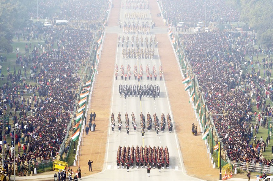 नई दिल्ली। भारत के 65वें गणतंत्र दिवस पर नई दिल्ली में कल ऐतिहासिक राजपथ पर भव्य परेड में भारत का सजीव मानचित्र दिखाई दिया। परेड में मुख्यरूप से भारत की सैन्य शक्ति देखने को मिली। राष्ट्रपति प्रणब मुखर्जी ने राजपथ पर झंडारोहण और वीरगति को प्राप्त एक जवान के पिता को मरणोपरांत अशोक चक्र प्रदान करने के साथ समारोह शुरू हुआ। परंपरागत रूप से इस बार इस मौके पर जापान के प्रधानमंत्री शिंजो अबे मुख्य अतिथि के रूप में उपस्थित थे। अत्याधुनिक रक्षा साधनों और सैन्य क्षमता के अलावा देश की समृद्धि और बेजोड़ सांस्कृतिक विरासत तथा विविध क्षेत्रों में राष्ट्र की उपलब्धियां प्रदर्शित की गईं। परेड का मुख्य आकर्षण हलके लड़ाकू विमान तेजस थे, जिनका डिजाइन और विकास अपने ही देश में डीआरडीओ ने भारतीय वायु सेना के लिए किया है। तेजस चौथी श्रृंखला का सुपरसोनिक और उच्च करतब दिखाने वाला, मल्टी रोल, लघुतम और अपनी समसामयिक श्रेणी में सबसे हल्का लड़ाकू विमान है। भारत की हवाई रक्षा तैयारी के लिए इसे गेम चेंजर यानी पास पलटने वाला समझा जा रहा है।