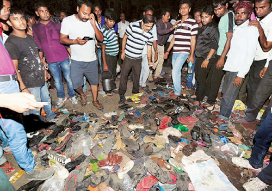 पटना। पटना का गांधी मैदान आज खून से लथपत है। दशहरा में रावण का पुतला फुंक जाने के बाद जब भीड़ गांधी मैदान से अपने घर लौटने की तैयारी में थी, तब भीड़ के कानों से एकाएक कोई अफवाह टकराई, फिर क्या था, लोग महिलाएं बच्चे बदहवासी में गांधी मैदान के गेट से भागने लगे और भगदड़ में लाशें बिछतीं गर्इं। एक मुंह सौ बातें हैं, कहने वाले कुछ का कुछ कह रहे हैं। कुछ यह भी कह रहे हैं कि यह कुछ और नहीं बल्कि बिहार में नरेंद्र मोदी की महारैली में बम विस्फोटों की विफलता की यह खूनी खीज है, बस उसका तरीका बदल दिया गया है। सबको मालूम था कि रावण दहन में कौन लोग मौजूद होंगे। बहरहाल इन लाशों पर बिहार चुनाव की राजनीति भी शुरू हो गई है। यह घटना बिहार सरकार की शर्मनाक विफलता मानी जा रही है, फिर भी सरकार के सहयोगी बेशर्म नेता दूसरे आरोप लगाने में जुट गए हैं। इस भगदड़ में मरने वालों की संख्या 33 के पार चली गई है। केंद्र सरकार और बिहार सरकार ने मुआवजे और घटना की जांच का ऐलान कर दिया है।