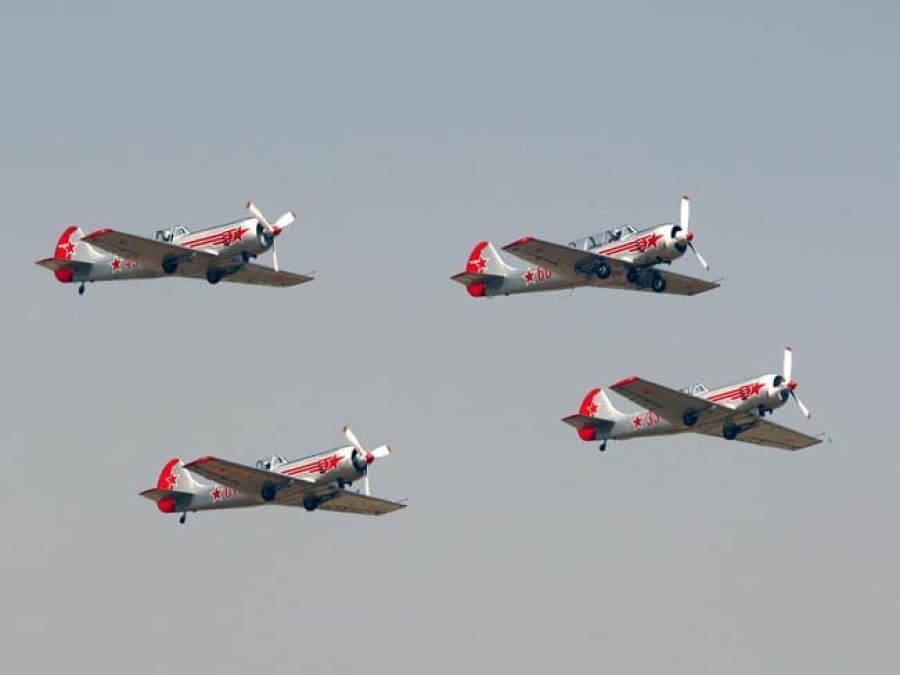 बंगलुरू। ब्रिटेन के चार विमान करतब दल-याकोबलेव्स ने बंगलुरू में एयरो इंडिया एयर शो में पहली बार भाग लेते हुए रूस में बने विमान याक की कलाबाजी दिखाई। यह दल सामान्य रूप से छह रूसी याक विमान को उड़ाता है, संयुक्त रूप से इसका प्रदर्शन शानदार होता है तथा विमान करतब कौशल में श्रेष्ठ है, लेकिन एयरो इंडिया में इस टीम ने केवल चार याक चलाए हैं। अग्रणी विमान संशोधित याक-52 है। किसी समय सोवियत रूस में स्पोर्ट्स पायलटों के प्रशिक्षण के लिए इसका उपयोग किया जाता था।