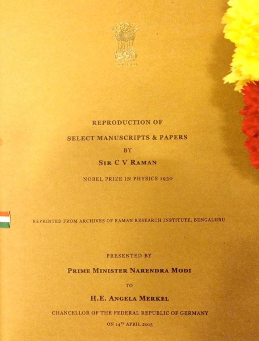 बर्लिन। प्रधानमंत्री नरेंद्र मोदी ने जर्मनी की चांसलर एंजिला मर्केल को सर सीवी रमन की कुछ पांडुलिपियों की पुनःप्रस्तुति और पेपर तोहफे में दिए, जिन्हें 1930 में भौतिकी में नोबल पुरस्कार से सम्मानित किया गया था। सर सीवी रमन को प्रकाश के उत्कीर्णन के लिए यह सम्मान मिला था। उन्होंने अपनी ज्यादातर पढ़ाई और प्रयोग भी भारत में ही किए तथा अधिकतर जीवन भारत में ही बिताया, लेकिन जर्मनी के साथ उनके बड़े आत्मीय संबंध थे।