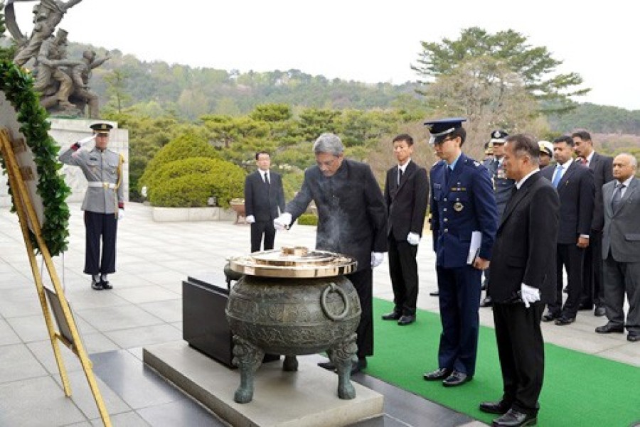 सियोल/ नई दिल्ली। रक्षामंत्री मनोहर पार्रिकर दक्षिण कोरिया की अपनी पहली आधिकारिक यात्रा के तहत आज सिओल पहुंच गए। इस दौरे में उनके साथ रक्षा सचिव, भारतीय सेना के अधिकारी, रक्षा मंत्रालय के अधिकारी और भारतीय रक्षा उद्योग का शिष्‍टमंडल भी है। कोरिया गणराज्‍य की तीन दिवसीय यात्रा के दौरान रक्षामंत्री अपने कोरियाई समकक्ष जनरल हान मीन कू के साथ 17 अप्रैल को दोनों देशों की रक्षा मंत्रालयों की बैठक की अध्‍यक्षता करेंगे।