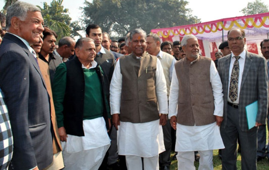 लखनऊ। चंद्रभानु गुप्त कृषि महाविद्यालय बख्शी का तालाब लखनऊ में आयोजित मौसमी भोज में रविवार को समाजवादी नेता बड़ी संख्या में शामिल हुए। समाजवादी पार्टी के राष्ट्रीय अध्यक्ष मुलायम सिंह यादव के साथ उनके पुत्र प्रतीक यादव और उनके मुख्य सहायक अरविंद यादव भी मौजूद थे। समाजवादी पार्टी के पूर्व सांसद और पूर्व मंत्री भगवती सिंह ने इस भोज का आयोजन किया था। मुलायम सिंह यादव ने महाविद्यालय में जनेश्वर मिश्र के नाम पर बने पुस्तकालय का निरीक्षण किया और महाविद्यालय का कृषि फार्म भी देखा। वहां गायों को देखकर उनके चेहरे पर खुशी झलक उठी, कई गायों को उन्होंने दुलारा भी।