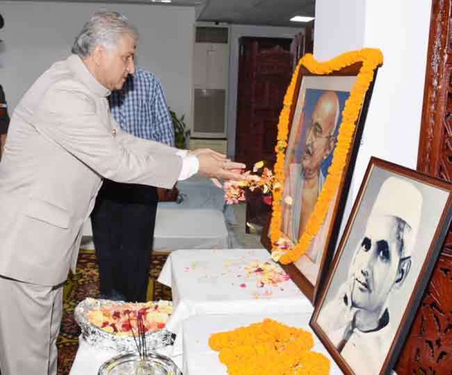 देहरादून। उत्तराखंड के राज्यपाल डॉ कृष्णकांत पाल ने शुक्रवार को राजभवन में गांधी जयंती पर पूर्ण श्रद्धा एवं सम्मान के साथ राष्ट्रपिता महात्मा गांधी तथा देश के पूर्व प्रधानमंत्री लालबहादुर शास्त्री के चित्रों पर माल्यार्पण कर उनके संघर्ष, त्याग और बलिदान के प्रति पूरे राज्य और राष्ट्र की ओर से कृतज्ञता व्यक्त की। राज्यपाल ने जय जवान-जय किसान का नारा देने वाले लाल बहादुर शास्त्री को सादगी की प्रतिमूर्ति बताते हुए उनके जीवन-आचरण को आज और अधिक प्रासंगिक बताया। इस अवसर पर मुख्यमंत्री हरीश रावत ने भी गांधीजी एवं लालबहादुर शास्त्री के चित्रों पर माल्यार्पण कर श्रद्धांजलि अर्पित की।