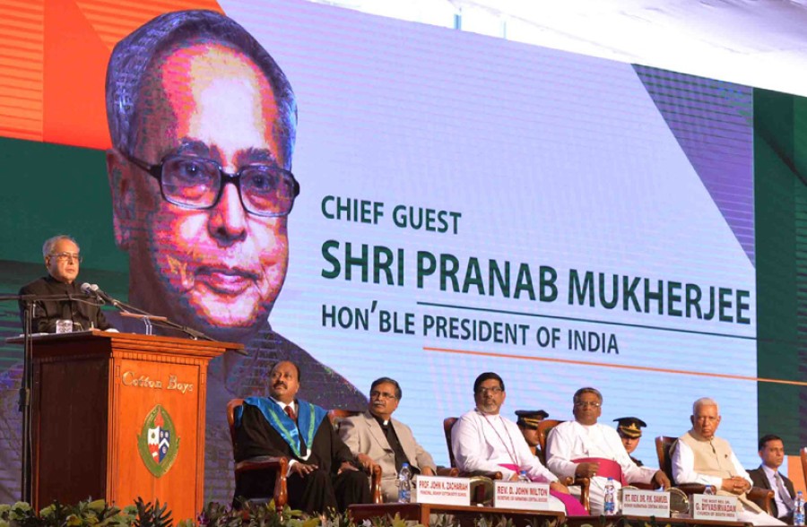 बैंगलुरू। राष्ट्रपति प्रणब मुखर्जी बैंगलुरू में बिशप कॉटन बॉयज़ स्कूल की 150वीं वर्षगांठ में शामिल हुए। राष्ट्रपति ने ईश्वर के समान शिक्षा क्षेत्र की सफलतापूर्वक 150 सालों तक सेवा करने के लिए बिशप कॉटन बॉयज़ स्कूल के संस्थापकों और प्रबंधन को बधाई दी। उन्होंने कहा कि स्कूल ने गुणवत्ता पर विशेष ध्यान और महत्व देकर शिक्षा क्षेत्र में अपने लिए जगह बना ली है, शिक्षा का उद्देश्य चरित्र के निर्माण करना होना चाहिए न कि जानकारी को दिमाग में ठूंसना।