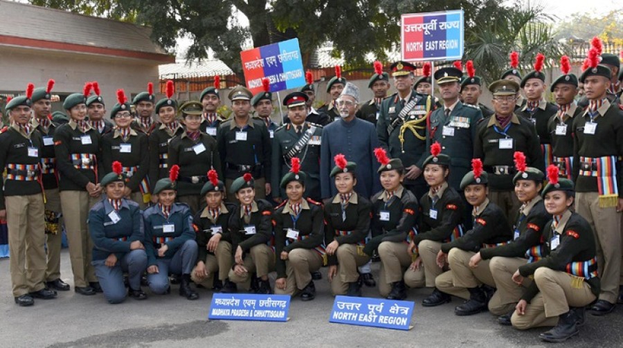 नई दिल्ली। राष्ट्रीय कैडेट कोर गणतंत्र दिवस शिविर 2016 में अपने रोमांचकारी और उत्साहित करने वाले शौर्य और वीरता के शानदार करतब दिखा रहे हैं। यह शिविर दिल्ली कैंट में गैरीसन परेड ग्राउंड के निकट चल रहा है। शिविर में देश के सभी राज्यों तथा केंद्र शासित प्रदेशों की 17 एनसीसी निदेशालयों से 2069 कैडेट शामिल हैं, इनमें 695 लड़कियां भी हैं। यह शिविर 28 जनवरी 2016 को प्रधानमंत्री की रैली में समाप्त होगा। शिविर में भाग ले रहे कैडेट्स सांस्कृतिक कार्यक्रम, राष्ट्रीय एकता, जागृति तथा संस्थागत प्रशिक्षण स्पार्धाओं में शामिल हैं। उपराष्ट्रपति मोहम्मद हामिद अंसारी ने राष्ट्रीय कैडेट कोर गणतंत्र दिवस शिविर 2016 का एनसीसी महानिदेशालय परिसर में उद्घाटन किया। एनसीसी महानिदेशक लेफ्टिनेंट जनरल अनिरुद्ध चक्रवर्ती ने उपराष्ट्रपति की अगवानी की। हामिद अंसारी ने युवकों और बच्चों से अधिक संख्या में एनसीसी में शामिल होने को कहा है।