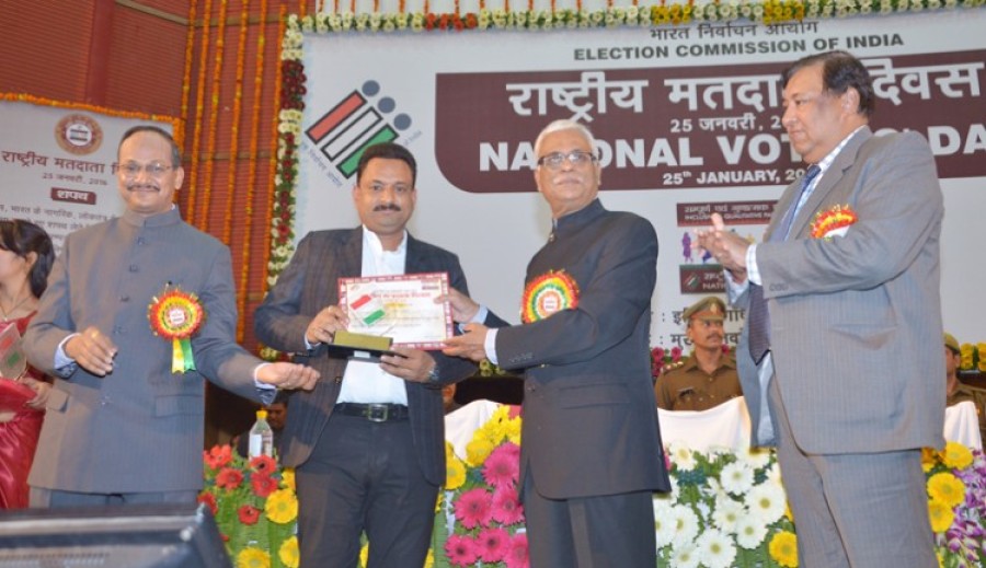 लखनऊ। राष्ट्रीय सेवा योजना लखनऊ विश्वविद्यालय के कार्यक्रम समन्वयक डॉ राकेश द्विवेदी को राष्ट्रीय मतदाता दिवस पर निर्वाचन आयोग उत्तर प्रदेश के आयुक्त एसके अग्रवाल एवं अरुण सिंघल ने उत्तर प्रदेश के इंदिरा गांधी प्रतिष्ठान में राज्य स्तरीय पुरस्कार से सम्मानित किया। यह सम्मान इन्हें स्वीप कार्यक्रमों के अंतर्गत विशेष योगदान हेतु प्र्रदान किया गया है। डॉ राकेश द्विवेदी ने लखनऊ विश्वविद्यालय एवं इससे संबद्ध महाविद्यालयों की 135 राष्ट्रीय सेवा योजना इकाईयों के माध्यम से गतवर्ष मतदाता जागरूकता से संबंधित अनेक कार्यक्रमों का आयोजन किया, जिसमें विशेषकर निर्वाचक नामावलियों का संक्षिप्त पुर्नरीक्षण भी सम्मिलित है।