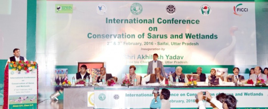 मुख्यमंत्री ने कहा कि दुनिया में सबसे अधिक सारस भारत में पाए जाते हैं और देश में पाए जाने वाले सारस पक्षी की कुल संख्या का 60 प्रतिशत क्षेत्र उत्तर प्रदेश में है और उत्तर प्रदेश में भी इटावा का इलाका इनका प्रमुख परिवास है। मुख्यमंत्री ने संदर्भ व्यक्त किया कि सारस जीवनभर के लिए जोड़ा बनाते हैं। अखिलेश यादव ने कहा कि शेखा झील को वर्ल्ड झील बनाए जाने के लिए चयनित किया गया है, जिसे सौंदर्यीकरण के साथ विकसित किया जाएगा। उन्होंने कहा कि अधिकाधिक उत्पादन के लालच में ज्यादा रासायनिक उर्वरकों का प्रयोग करने से पर्यावरण प्रभावित हो रहा है, जिसका असर प्राणि जगत पर भी पड़ रहा है। उन्होंने कहा कि वेटलैंड्स संरक्षण कार्य में ग्राम प्रधान और किसान महत्वपूर्ण भूमिका निभा सकते हैं। मुख्यमंत्री ने कहा कि संगोष्ठी में आए देश-विदेश के संरक्षण विशेषज्ञों एवं वैज्ञानिकों के सुझावों को लागू किया जाएगा।