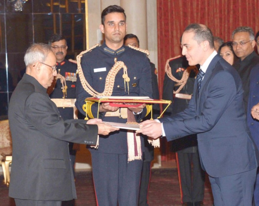 नई दिल्ली। राष्ट्रपति प्रणब मुखर्जी को राष्ट्रपति भवन में आयोजित एक समारोह में क्यूबा, आयरलैंड, हंगरी, माल्टा और संयुक्त अरब अमीरात के राजदूतों ने अपने प्रमाण-पत्र सौंपे। प्रमाण-पत्र सौंपने वाले राजदूतों में क्यूबा के राजदूत ऑस्कर इजराइल मार्टिनेज कॉर्डोज, आयरलैंड के राजदूत ब्रायन मेकएल्डफ, हंगरी के राजदूत ग्युला पेथो, माल्टा के उच्चायुक्त स्टीफन बोर्ग और संयुक्त अरब अमीरात के राजदूत डॉ अहमद ए आर अलबाना शामिल थे।