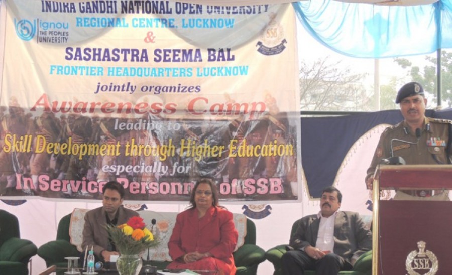 लखनऊ। इंदिरा गांधी राष्ट्रीय मुक्त विश्वविद्यालय क्षेत्रीय केंद्र लखनऊ ने सशस्त्र सीमा बल फ्रंटीयर मुख्यालय लखनऊ में इग्नू के कार्यक्रमों से संबंधित शैक्षणिक जागरूकता शिविर का आयोजन किया। कार्यक्रम में सशस्त्र सीमा बल में कार्यरत लगभग 300 अधिकारियों एवं जवानों ने भाग लिया। कार्यक्रम की शुरूआत करते हुए सशस्त्र सीमा बल के महानिरीक्षक वीएच देशमुख ने अधिकारियों एवं जवानों के समक्ष दूरस्थ शिक्षा प्रणाली के महत्व पर प्रकाश डाला और उन्हें प्रोत्साहित किया कि वे इग्नू के संचालित कार्यक्रमों में अपना नामांकन करवाएं और इन कार्यक्रमों का लाभ उठाएं। सशस्त्र सीमा बल के कमांडेंट एसके सिंह ने भी अधिकारियों एवं जवानों को दूरस्थ शिक्षा के माध्यम से अपने ज्ञान एवं कौशल को बढ़ाने के लिए प्रोत्साहित किया।