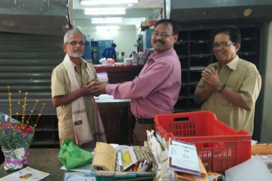मुंबई। मालाड (वेस्ट) में जकरिया रोड पर मालाड डिलीवरी पोस्ट ऑफिस में पोस्टमॉस्टर प्रभुनारायण भारद्वाज ने पोस्टमैन अजित ए सावंत को 'बेस्ट परफॉरमेंस ऑफ दी मंथ फरवरी 2016' के लिए सम्मानित किया। पोस्टमॉस्टर प्रभुनारायण भारद्वाज ने बताया कि पोस्टल डिपार्टमेंट ने पोस्टमैनों को सम्मानित करने का काम शुरू किया है। उन्होंने कहा कि जिस पोस्टमैन की सबसे ज्यादा हाज़िरी और लोगों से अच्छा व्यवहार होगा, उसको हर महीने सम्मानित किया जाएगा, जिसमें उसको यह सम्मान दिया जाएगा और यही नहीं उसका ऑफिस के बोर्ड पर फोटो भी लगाया जाएगा। इससे पोस्टमैनों का मनोबल बढ़ेगा और वे अच्छे से काम करेंगे। पोस्टमैन अजित ए सावंत पिछले 30 वर्ष से भारतीय डाक में काम कर रहे हैं। सम्मान ग्रहण करने पर पोस्टमैन अजित ए सावंत ने कहा कि यह पोस्टल डिपार्टमेंट का एक सराहनीय कदम है। उन्होंने इस सम्मान के लिए सभी का धन्यवाद किया।
