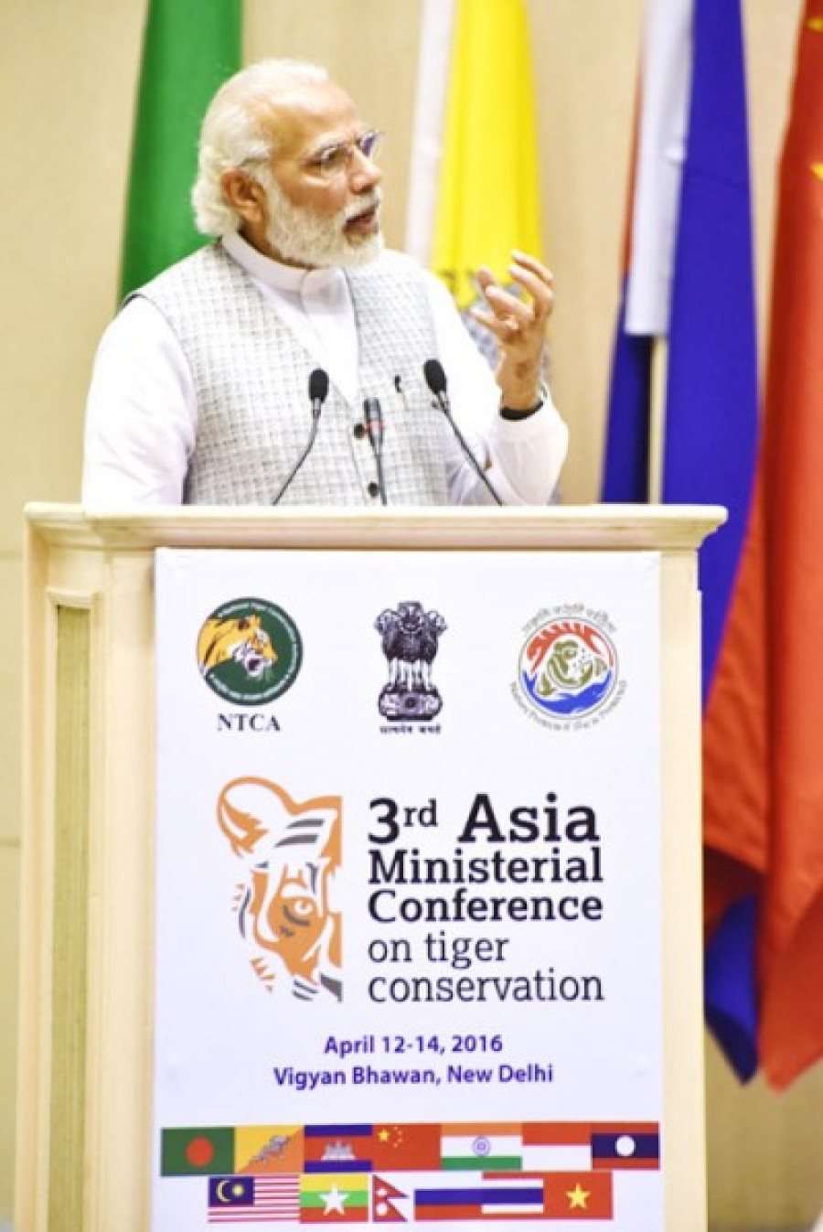 भारत बाघ श्रृंखला देशों की तरह वैश्विक बाघ मंच का संस्थापक सदस्य है, जिसका मुख्यालय नई दिल्ली में है, यह अपने किस्म का एक मात्र अंतर-सरकारी संगठन है, यह संगठन वैश्विक बाघ कार्यक्रम परिषद के साथ मिलकर काम कर रहा है। प्रधानमंत्री ने कहा कि मेजबान देश के रूप में मैं पूरे समर्थन का आश्वासन देता हूं, हमें भारत के वन्यजीव संस्थान में वन्यजीव कर्मियों के क्षमता के विकास में मदद देने में भी खुशी होगी। बाघ श्रृंखला देशों ने विलुप्त प्रजातियों के अंतर्राष्ट्रीय व्यापार की समस्या के समाधान के लिए अन्य अंतर्राष्ट्रीय समझौतों पर भी हस्ताक्षर किए हैं और इस बारे में हम औपचारिक रूप से दक्षिण एशिया वन्यजीव प्रवर्तन नेटवर्क कानून को अपनाने की दिशा में आगे बढ़ रहे हैं। प्रधानमंत्री ने कहा कि बाघों का संरक्षण कोई चयन और पसंद का काम नहीं है, यह आवश्यक है और मैं यह भी कहना चाहूंगा कि वन्यजीव अपराधों का मुकाबला करने के लिए क्षेत्रीय सहयोग आवश्यक है, इस सम्मेलन में बाघ और उसके निवास क्षेत्र के संरक्षण के लिए एक साथ काम करने का संकल्प लेना चाहिए, भारत इसके लिए सभी बाघ श्रृंखला देशों के साथ कार्य करने के लिए संकल्पबद्ध है। पर्यावरण, वन एवं जलवायु परिवर्तन मंत्री प्रकाश जावडेकर भी अन्य प्रमुख प्रतिनिधियों के साथ मंच पर उपस्थित थे।