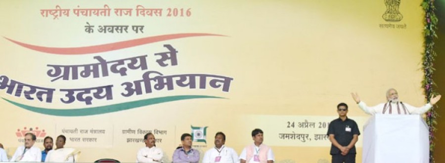 जमशेदपुर (झारखंड)। प्रधानमंत्री नरेंद्र मोदी ने राष्ट्रीय पंचायती राज दिवस पर जमशेदपुर से देशभर की सभी पंचायतों को संबोधित किया। इस अवसर को ग्रामोदय से भारत उदय अभियान की परिणिति के रूप में भी चिन्हित किया जाता है, जो 14 अप्रैल को महू में बाबासाहेब अंबेडकर की 125वीं जयंती से प्रारंभ हुआ था। नरेंद्र मोदी ने जोर देते हुए कहा कि ग्रामीण क्षेत्रों में सुविधाएं और सेवाएं शहरों के समान होनी चाहिएं।
