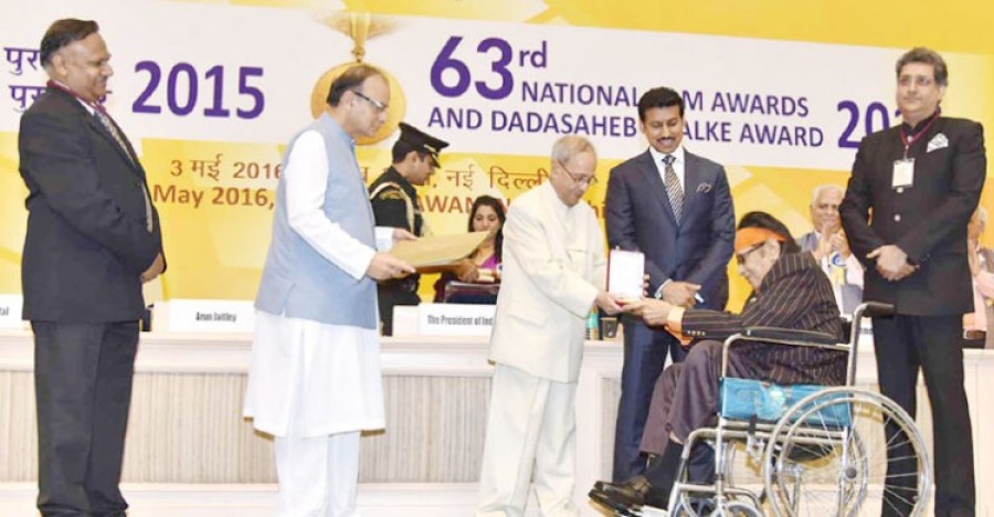 नई दिल्ली। राष्ट्रपति प्रणब मुखर्जी ने विज्ञान भवन में आयोजित 63वें राष्ट्रीय फिल्म पुरस्कार समारोह के दौरान विभिन्न श्रेणियों में वर्ष 2015 के लिए राष्ट्रीय फिल्म पुरस्कार प्रदान किए, इनमें प्रसिद्ध अभिनेता मनोज कुमार को दिया गया दादासाहेब फाल्के सम्मान, अमिताभ बच्चन को सर्वश्रेष्ठ अभिनेता एवं कंगना रनौत को सर्वश्रेष्ठ अभिनेत्री का पुरस्कार प्रमुख है। इस अवसर पर राष्ट्रपति ने कहा कि भारतीय फिल्में सही मायने में एकता और विविधता के भारतीय स्वरूप को प्रतिबिंबित करती हैं। उन्होंने राष्ट्रीय फिल्म पुरस्कारों के विजेताओं को बधाई दी, जिनमें नए कलाकारों के साथ-साथ भारतीय सिनेमा के दिग्गज भी शामिल हैं। उन्होंने कहा कि इस साल के राष्ट्रीय फिल्म पुरस्कार डिजिटाइजेशन एवं प्रौद्योगिकी समेत सिनेमा के समस्त पहलुओं को प्रतिबिंबित करते हैं।