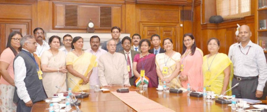 नई दिल्ली। राष्ट्रपति प्रणब मुखर्जी ने राष्ट्रपति भवन में ‘इन-रेजिडेंस’ कार्यक्रम के दौरान राज्यों और केंद्र शासित प्रदेशों के 12 पुरस्कार विजेता स्कूल के शिक्षकों से मुलाकात की। यह स्कूल शिक्षकों के लिए पहला ‘इन रेजिडेंस’ कार्यक्रम था, इस तरह के कार्यक्रम लेखकों, कलाकारों, जमीनी स्तर के अन्वेषकों, एनआईटी छात्रों और प्रेरित करने वाले शिक्षकों के लिए आयोजित होते हैं। राष्ट्रपति ने कहा कि ‘इन रेजिडेंस’ कार्यक्रम में शामिल सभी प्रतिभागियों को उच्च लक्ष्य प्राप्त करने के लिए निरंतर प्रयास करने चाहिए, उनकी सीमा आकाश तक है। उन्होंने कहा कि किसी भी सभ्यता की प्रगति तब तक संभव नहीं है, जब तक शिक्षक समाज को अपना वह ज्ञान नहीं दे, जिसके आधार पर प्रगति होनी है।