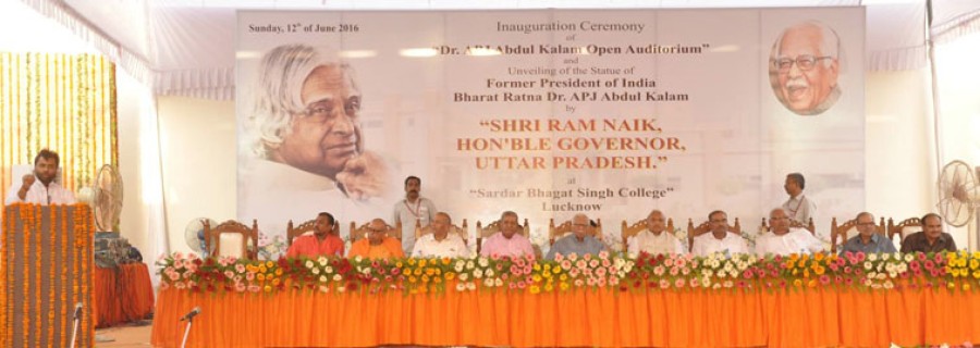 लखनऊ। उत्तर प्रदेश के राज्यपाल राम नाईक ने सरदार भगत सिंह कालेज मोहान में भारत के राष्ट्रपति और भारतरत्न डॉ एपीजे अब्दुल कलाम की प्रतिमा का अनावरण एवं 'ओपन आडिटोरियम' का उद्घाटन किया। राज्यपाल ने इस बात पर प्रसन्नता व्यक्त की कि कालेज का नाम शहीद भगत सिंह से जुड़ा है। उन्होंने कहा कि जब किसी शिक्षण संस्थान से इस तरह के व्यक्तित्व का नाम जुड़ता है तो छात्र, शिक्षक, प्राचार्य एवं संचालक का दायित्व होता है कि नाम के अनुसार कार्य निष्पादित किया जाए। उन्होंने कहा कि कालेज परिसर में डॉ एपीजे अब्दुल कलाम की प्रतिमा लगने से कालेज की विशेषता और गुणवत्ता की पहचान होती है, छात्र एवं महाविद्यालय प्रबंधन डॉ एपीजे अब्दुल कलाम के कृतित्व एवं व्यक्तित्व पर चलें।