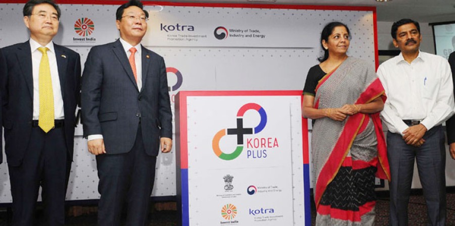 नई दिल्ली। भारत सरकार के वाणिज्य एवं उद्योग मंत्रालय में स्वतंत्र प्रभार राज्यमंत्री निर्मला सीतारमण और कोरिया के व्यापार, उद्योग और ऊर्जा मंत्री जू ह्यूंगवान ने भारत में कोरियाई निवेश को बढ़ावा देने के उद्देश्य से 'कोरिया प्लस' नामक एक विशेष पहल की शुरूआत की। 'कोरिया प्लस' की स्थापना के समझौता ज्ञापन पर पहले ही कोरिया के व्यापार, उद्योग और ऊर्जा मंत्रालय तथा भारत के राष्ट्रीय निवेश संवर्धन एवं सरलीकरण संस्था के उपक्रम 'इनवेस्ट इंडिया' के बीच जनवरी 2016 में हस्ताक्षर किए गए थे। यह समझौता ज्ञापन मई 2015 में भारतीय प्रधानमंत्री की दक्षिण कोरिया दौरे का परिणाम है।