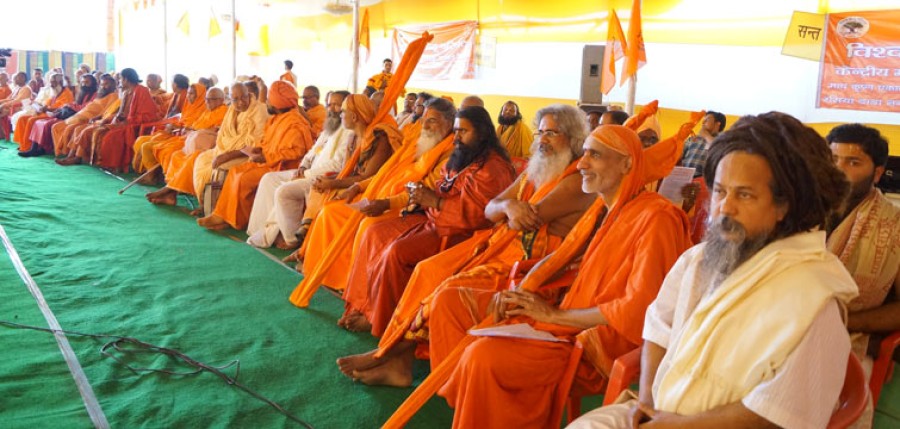 संत महासम्मेलन में ज्योतिष्पीठाधीश्वर जगद्गुरु शंकराचार्य स्वामी वासुदेवानंद सरस्वती पेजावर पीठाधीश्वर मध्वाचार्य स्वामी विश्वेशतीर्थ, जगद्गुरु रामानंदाचार्य स्वामी रामभद्राचार्य, महंत नृत्यगोपालदास,जगद्गुरु शंकराचार्यस्वामी नरेंद्रानंद सरस्वती, स्वामी माधवप्रियदास, जीयर स्वामी, जगद्गुरु रामानंदाचार्य स्वामी रामाधराचार्य, आचार्य महामंडलेश्वर स्वामी विश्वदेवानंद,आचार्य महामंडलेश्वरस्वामी विश्वेश्वरानंद, महंत आदित्यनाथ, स्वामी रामबिलासदास वेदांती, जगद्गुरु रामानुजाचार्य स्वामी कौशलेंद्र प्रपन्नाचार्य,जगद्गुरु रामानुजाचार्य स्वामी वासुदेवाचार्य, महामंडलेश्वर स्वामी विशोकानंद भारती, महामंडलेश्वर स्वामी रामेश्वरानंद सरस्वती, महामंडलेश्वर वेद भारती, महामंडलेश्वर बालकानंद गिरि, महामंडलेश्वर उमाकांतानंद सरस्वती, स्वामी विवेकानंद, स्वामी विज्ञानानंद सरस्वती, स्वामी चिन्मयानंद सरस्वती, महंत डॉ रामकमलदास वेदांती, महामंडलेश्वर वियोगानंद, माँ पूर्णप्रज्ञा, महंत देवानंद सरस्वती, महंत कन्हैयादास, महंत रवींद्रानंद सरस्वती, जैन मुनि आचार्य प्रगल्भ सागर, जैन संत रवींद्र चंद्रदेव, महंत धर्मप्रकाश, भागवत दास, विजयराम दास, सुशील दास, रामकुमार दास, योगिराज और राम शंकर प्रमुख रूप से उपस्थित थे।