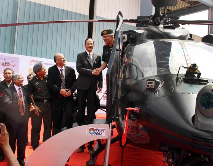 बेंगलूरू। हिंदुस्तान एरोनोटिक्स लिमिटेड के अध्यक्ष डॉ आरके त्यागी ने कंपनी से विकसित उन्नत हल्के हेलीकाप्टर एमके-4 ‘रुद्र’ को बेंगलूरू में आयोजित एयरो इंडिया 2013 के दौरान सेना उप प्रमुख ले.जन. नरेंद्र सिंह को सौंपा। ‘रुद्र’ हेलीकाप्टर को घरेलू स्तर पर विकसित किया गया है और उसे विभिन्न भू-भागों और चांदमारी के क्षेत्रों में आजमाया गया है। अपने इस परीक्षण में यह हेलीकाप्टर सफल हुआ है और आशा की जाती है कि आधुनिक समय के युद्ध के दौरान यह कसौटी पर खरा उतरेगा।
