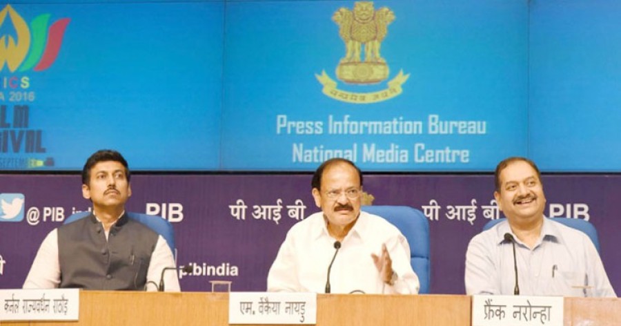 नई दिल्ली। सूचना एवं प्रसारण मंत्री एम वेंकैया नायडू ने नेशनल मीडिया सेंटर में ब्रिक्स फिल्म महोत्सव के पूर्वालोकन के संबंध में आयोजित संवाददाता सम्मेलन को संबोधित करते हुए कहा है कि यह फिल्म महोत्सव सदस्य देशों के फिल्म उद्योग से जुड़े लोगों के लिए एक ऐसा मंच होगा, जिसमें सिनेमा, संस्कृति और व्यंजनों के क्षेत्र में सहयोग की संभावनाएं तलाशी जा सकेंगी। उन्होंने बताया कि महोत्सव के दौरान फिल्म निर्माताओं, अभिनेताओं और निर्देशकों को पुरस्कृत कर सिनेमा की उत्कृष्टता का जश्न मनाया जाएगा। वेंकैया नायडू ने बताया कि ब्रिक्स फिल्म महोत्सव के आयोजन का विचार सबसे पहले पिछले ब्रिक्स शिखर सम्मेलन में आया था, जिसमें प्रधानमंत्री नरेंद्र मोदी ने ब्रिक्स फिल्म महोत्सव और फिल्म पुरस्कारों का प्रस्ताव किया था। इस अवसर पर सूचना एवं प्रसारण राज्यमंत्री कर्नल राज्यवर्धन राठौर भी उपस्थित थे।
