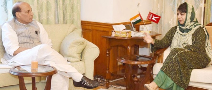 श्रीनगर। गृहमंत्री राजनाथ सिंह ने अपने श्रीनगर दौरे पर विभिन्न राजनीतिक दलों के साथ कई मुलाकातें की हैं। राजनाथ सिंह ने कश्मीर घाटी में सुरक्षा की स्थिति का जायजा लेने के लिए सुरक्षा एजेंसियों एवं राज्य सरकार के वरिष्ठ अधिकारियों के साथ एक बैठक भी की। गृहमंत्री राजनाथ सिंह ने जम्मू-कश्मीर की मुख्यमंत्री महबूबा मुफ्ती से भी मुलाकात की और राज्य में सुरक्षा संबंधी प्रबंध एवं हालात पर चर्चा की। जम्मू-कश्मीर की मुख्यमंत्री महबूबा मुफ्ती ने कहा कि राज्य की बड़ी आबादी शांति के पक्ष में हैं। उन्होंने साफ कहा कि बच्चों को उकसाया जा रहा है। उन्होंने कहा कि केवल पांच प्रतिशत लोग घाटी में इस तबाही के लिए जिम्मेदार हैं। राजनाथ सिंह के साथ संयुक्त वार्ता में उन्होंने कहा कि वह कश्मीर को जहन्नुम नहीं बनने देंगी।