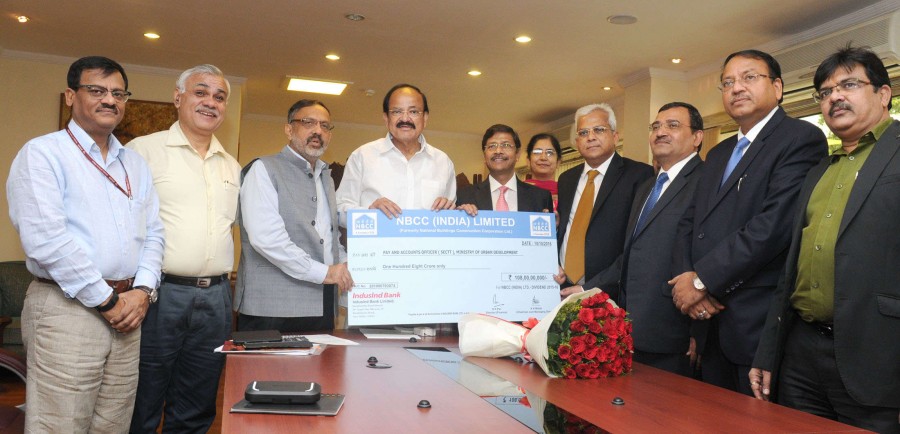 नई दिल्ली। राष्ट्रीय भवन निर्माण निगम ने भारत सरकार में शहरी विकास मंत्री एम वैंकेया नायडु को 2015-16 के लिए 108 करोड़ रूपए का लाभांश चैक सौंपा। पिछले कुछ वर्ष से लगातार कारोबार बढ़ाने और मुनाफा कमाने के लिए एनबीसीसी की सराहना करते हुए वैंकेया नायडु ने कंपनी प्रबंधन से राज्य सरकारों और अन्य एजेंसियों के साथ साझेदारी बढ़ाकर अपने कारोबार का विस्तार करने और इसमें विविधता लाने को कहा। उन्होंने एनबीसीसी के गैर बैंकिंग वित्तीय कंपनी स्थापित करने की पहल का स्वागत किया।