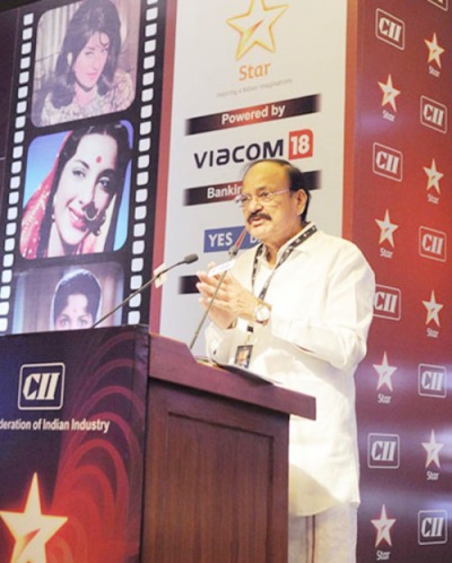 सूचना एवं प्रसारण मंत्री ने फिल्म क्षेत्र में उठाए गए कदमों के बारे में कहा कि भारत में फिल्म शूटिंग स्थलों एवं डिजिटल मीडिया हब को देखते हुए इस क्षेत्र को विश्व में अग्रणी बनाए जाने की प्रचुर संभावना है। उन्होंने कहा कि हमारी फिल्में, कलाकार, कंटेंट एवं टेक्नॉलाजी नए एवं उभरते वैश्विक बाजारों में अपनी पहुंच बढ़ा रही हैं, सरकार का लक्ष्य एक सक्षमकारी नियामक वातावरण के निर्माण के जरिए इस बदलाव को सरल बनाना है। उन्होंने कहा कि अन्य देशों के साथ सह-निर्माण समझौतों ने भारत के सॉफ्ट पावर का प्रोजेक्शन और ब्रॉडिंग सुनिश्चित की है। भारतीय उद्योग परिसंघ के इस सम्मेलन की थीम ‘प्रतिस्पर्धी बने रहने के लिए चुनौतियों का सामना करना’ के मुद्दे पर वेंकैया नायडू ने कहा कि इस प्रक्रिया ने दुनियाभर में व्यवसाय मॉडलों को उल्लेखनीय रूप से बदल दिया है।