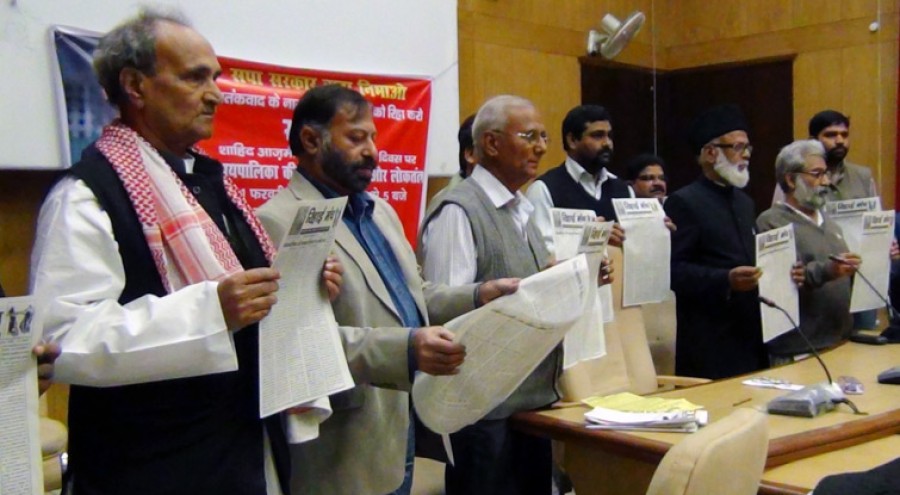 लखनऊ। रिहाई मंच ने लखनऊ में अधिवक्ता शाहिद आज़मी की तीसरी बरसी पर एक सम्मेलन आयोजित कर भारतीय न्याय पालिका पर सांप्रदायिकता, लोकतंत्र और आतंकवाद के मामलों में आरोपित मुस्लिम युवकों के प्रति सांप्रदायिक आधार पर भेदभाव किए जाने जैसे गंभीर आरोप लगाए हैं और कुछ वक्ताओं ने जजों की आलोचना करते हुए कहा है कि इससे देश के सामने एक न्यायिक फासीवाद का खतरा उत्पन्न हो गया है, जो लोकतंत्र के लिए खतरनाक है।