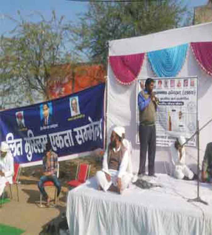 मेवात (हरियाणा)। भारतीय समन्वय संगठन 'लक्ष्य' के तत्वावधान में दलित मुस्लिम और पिछड़ा एकता को समर्पित एक दिवसीय कैडर कैंप का रविवार को हरियाणा के जिला मेवात नुहूं की नई अनाज मंडी में सफलतापूर्वक आयोजन हुआ। कैडर कैंप में आए मौलाना शेर मोहम्मद, कारी असलम, नासिर हुसैन और उनके साथियों ने बहुजन समाज को एक मंच पर आने का आह्वान किया। उन्होंने कहा कि अगर हमें सामाजिक समस्याओं का निदान करना है तो बाबासाहब भीमराव अंबेडकर से बेहतर रास्ता कोई नहीं है। उन्होंने कहा कि अंबेडकर के दिखाए रास्ते पर ही चलना होगा और दलित मुस्लिम और पिछड़े वर्ग को एक होकर जुल्म के खिलाफ मुकाबला करना होगा।