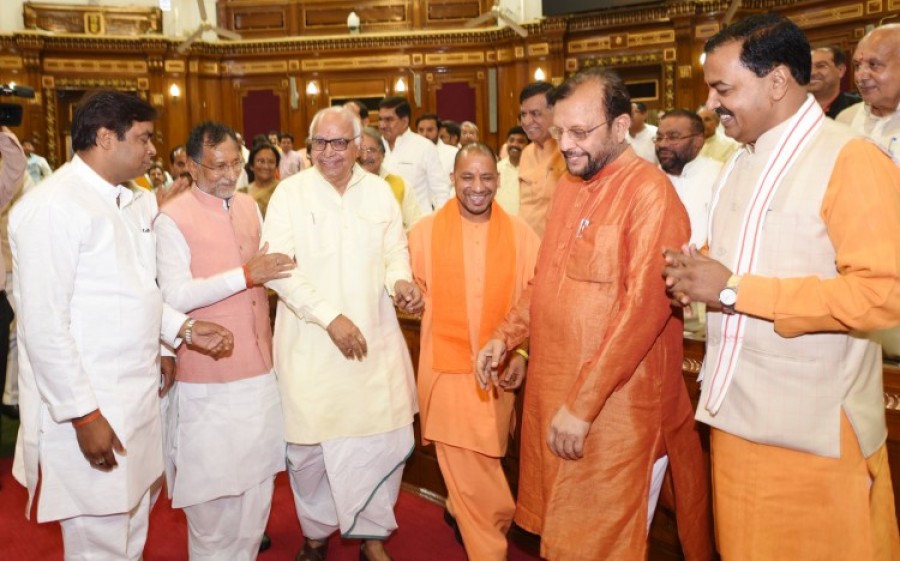 विधानसभा मंडप में नेता सदन योगी आदित्यनाथ ने कहा भी कि विभिन्न विषयों पर उनका सुदीर्घ सार्वजनिक, संसदीय और विधायी अनुभव हम सभी के लिए अवश्य ही उपयोगी साबित होगा। मुख्यमंत्री योगी आदित्यनाथ ने कहा है कि राज्य सरकार देश की लोकतांत्रिक परम्पराओं, मूल्यों और आदर्शों के अनुरूप कार्य करते हुए राज्य में लोकतांत्रिक प्रणाली को मजबूत बनाएगी। उन्होंने इसके लिए सभी दलों के सदस्यों के सहयोग का आह्वान किया। उन्होंने कहा कि सदन को चर्चा-परिचर्चा का एक आदर्श मंच बनाकर हम सबको मिलकर जनभावनाओं पर खरा उतरने का प्रयास करना होगा। मुख्यमंत्री ने विधानभवन में सर्वसम्मति से हृदय नारायण दीक्षित के विधानसभा अध्यक्ष के निर्वाचन अपने विचार व्यक्त किए। उन्होंने कहा कि उनका सर्वसम्मति से विधानसभा अध्यक्ष चुना जाना लोकतंत्र की सर्वोच्च एवं आदर्श परम्पराओं में से एक है। उन्होंने भरोसा जताया कि सदन में पहली बार चुनकर आए नए सदस्यों को भी नवनिर्वाचित विधानसभा अध्यक्ष के संरक्षण में बिना किसी भेदभाव के अपनी बात रखने का मौका मिलेगा।