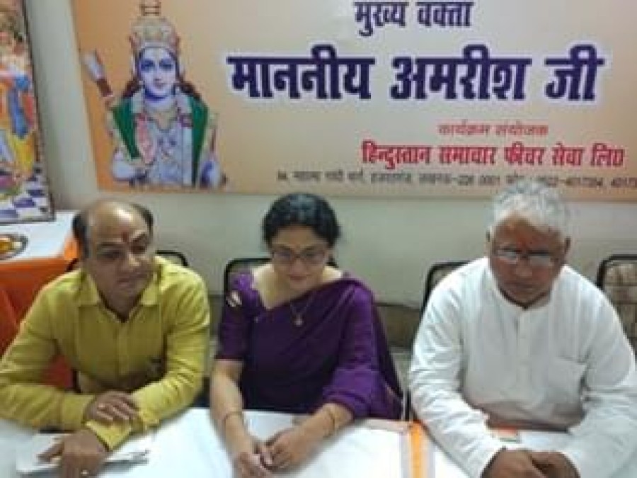 धर्म रक्षा निधि अर्पण कार्यक्रम में हिंदुस्तान समाचार फीचर सेवा की प्रधान संपादक मनीषा स्वामी कपूर ने विहिप, धर्म रक्षा निधि और अपने संस्थान की गतिविधियों पर प्रकाश डालते हुए मुख्य अतिथि एवं आगंतुकों का स्वागत किया। कार्यक्रम में विहिप के वरिष्ठ पदाधिकारी भोलेंद्रजी, राष्ट्रीय एकता मिशन के पदाधिकारी डॉ एचएस चौहान, संघ के वरिष्ठ पदाधिकारी, कार्यकर्ता मौजूद थे। हिंदुस्तान समाचार फीचर सेवा संस्थान के निदेशक ऋषि कपूर ने धन्यवाद ज्ञापित किया।