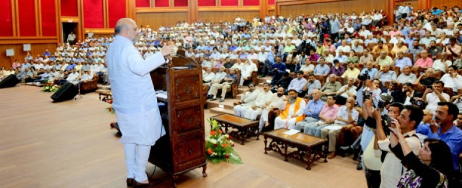 भाजपा अध्यक्ष ने कहा कि देश के ग़रीब से ग़रीब नागरिकों को भी अच्छी ज़िंदगी जीने का अधिकार है, उनके पास अच्छी स्वास्थ्य सुविधाएं, अच्छी शिक्षा और अपना घर हो, इसके लिए हमने योजनाएं न केवल बनाई हैं, बल्कि उन्हें नीचे तक पहुंचाने का काम किया है। अमित शाह ने कहा कि प्रधानमंत्री नरेंद्र मोदी का लालकिले की प्राचीर से स्वच्छता अभियान देश के हर नागरिक का अभियान बन गया। उन्होंने कहा कि हमने जनभागीदारी के जरिए सामाजिक समस्याओं का हल ढूंढने की पहल की है। अमित शाह ने कहा कि जम्मू-कश्मीर में विकास के लिए प्रधानमंत्री ने कई योजनाओं का शुभारंभ किया है। उन्होंने कहा कि राज्य में दो एम्स, पांच मेडिकल कॉलेज, 80 हजार करोड़ रुपए का विशेष पैकेज दिया गया, जन-धन योजना के तहत 20 लाख से अधिक लोगों के बैंक खाते खोले गए, मुद्रा योजना के तहत राज्य के हजारों युवाओं को स्वरोज़गार उपलब्ध कराए गए। उन्होंने कहा कि पहले कांग्रेस-नीत यूपीए सरकार में जहां जम्मू-कश्मीर को 19 हजार करोड़ रुपए मिलते थे, अब मोदी सरकार में बढ़कर लगभग 58 हजार करोड़ रुपए हो गए हैं, करों में मिलने वाली हिस्सेदारी भी बढ़ाई गई है, विकास के और बहुत से कार्य हुए हैं। उन्होंने कहा कि जम्मू-कश्मीर के विकास के लिए नरेंद्र मोदी सरकार में विगत तीन साल में जितना कार्य हुआ है, उतना 50 साल में कभी नहीं हुआ।