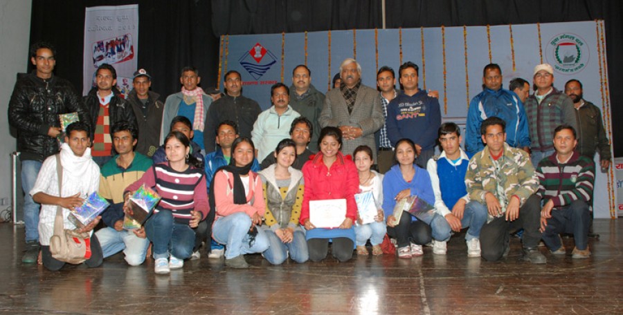 देहरादून। उत्तराखंड राज्य युवा कल्याण एवं प्रांतीय रक्षक दल विभाग तत्वावधान में घोष ऑडिटोरियम ओएनजीसी देहरादून में आयोजित राज्य युवा महोत्सव-2013 कार्यक्रम के दूसरे दिन एकांकी एवं शास्त्रीय संगीत का आयोजन किया गया। एकांकी में प्रदेश के 9 जनपदों ने भाग लिया, जिसमें प्रथम स्थान चमोली को, दूसरा स्थान देहरादून एवं तृतीय स्थान पर चंपावत की टीम को मिला, जबकि कल की लोक नृत्य प्रतियोगिता में प्रथम स्थान चमोली, द्वितीय स्थान पिथौरागढ़ एवं तृतीय स्थान देहरादून की टीम को प्राप्त हुआ। लोकगीत प्रतियोगिता में प्रथम स्थान चंपावत, दूसरे स्थान पर पिथौरागढ़ एवं तृतीय स्थान पर पौड़ी की टीम रही। मुख्य अतिथि युवा कल्याण मंत्री दिनेश अग्रवाल ने विजेताओं को पुरस्कृत किया। इस अवसर पर आरसी डिमरी उप निदेशक युवा कल्याण, अजय कुमार अग्रवाल सहायक समादेष्टा युवा कल्याण, एसके जयराज सहायक निदेशक युवा कल्याण एवं अन्य अधिकारी और कर्मचारी उपस्थित थे।