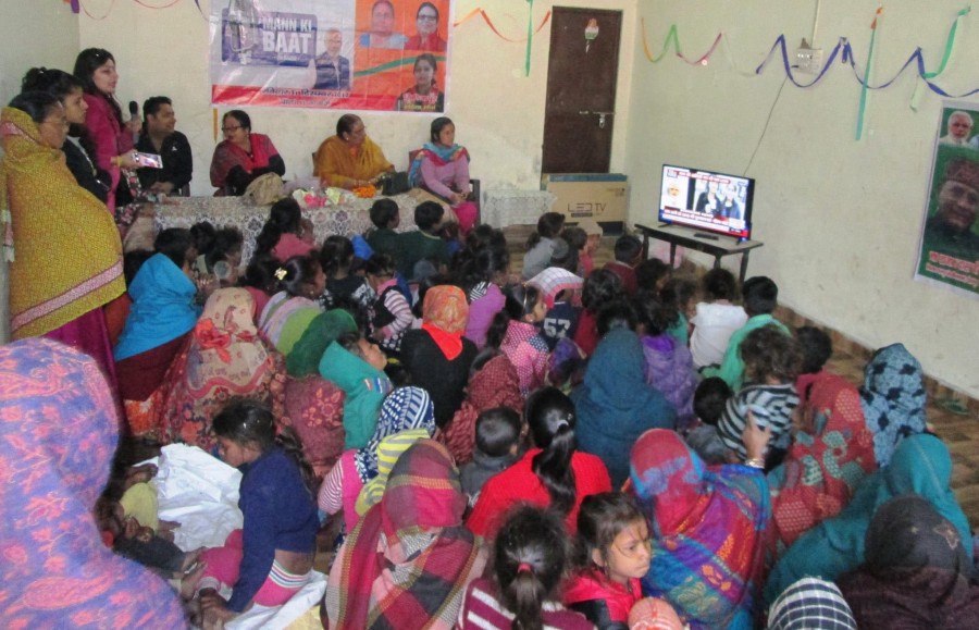 'मन की बात' में मौजूद महिलाओं ने प्रधानमंत्री के विभिन्न विषयों पर विचार सुने। 'मन की बात' चौपाल पर बच्चों एवं महिलाओं को खान-पान की वस्तुएं वितरित की गईं। कार्यक्रम में मौजूद अनेक महिलाओं ने भाजपा महिला मोर्चा की अध्यक्ष नीलम सहगल को अपने मन की बात यानी व्यथा-कथा भी सुनाई, जिनके समाधान के लिए नीलम सहगल ने प्राथमिकता देकर सरकार से त्वरित आवश्यक कार्रवाई कराने का आश्वासन दिया। 'मन की बात' श्रवण कार्यक्रम में महानगर भाजपा अध्यक्ष बृजलेश गुप्ता, भाजपा महानगर मंत्री तृप्ति उनियाल थापा, रिंकी कपूर, सुशीला देवी एवं बस्ती की महिलाएं मौजूद थीं।