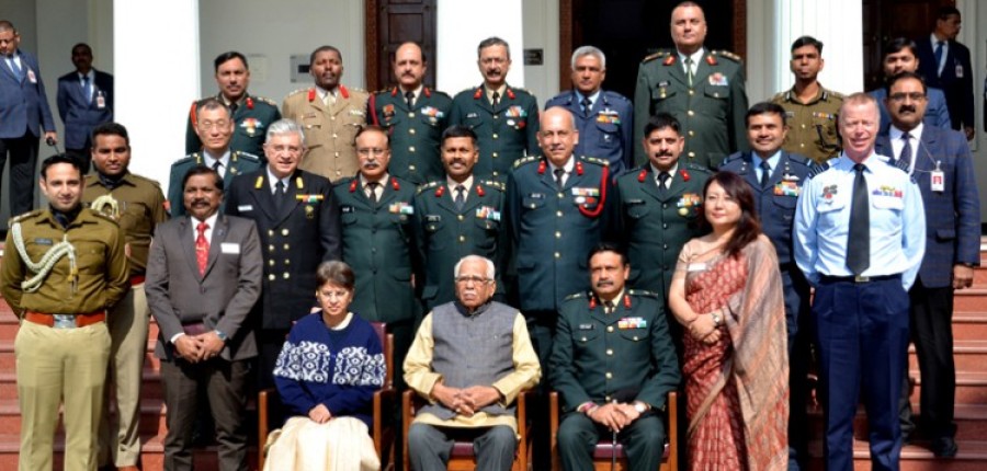 लखनऊ। उत्तर प्रदेश के राज्यपाल राम नाईक से आज राजभवन में मेजर जनरल अनिल पी डेयरे के नेतृत्व में राष्ट्रीय रक्षा महाविद्यालय नई दिल्ली के 17 सदस्यीय प्रतिनिधिमंडल ने शिष्टाचारिक भेंट की। प्रतिनिधिमंडल ‘नेशनल सिक्योरिटी एंड स्ट्रेटिजिक स्टडीज़’ विषय पर होने वाले पाठ्यक्रम के संदर्भ में 29 जनवरी से 2 फरवरी 2018 तक उत्तर प्रदेश के भ्रमण पर है। प्रतिनिधिमंडल में 7 सदस्य भारतीय सेना, 2 सदस्य भारतीय वायुसेना, 1 सदस्य भारतीय नौसेना, 3 सदस्य प्रशासनिक सेवा और 1-1 सदस्य ऑस्ट्रेलिया, केन्या, उत्तर कोरिया और नेपाल आदि देशों के भी शामिल थे। राष्ट्रीय रक्षा महाविद्यालय के फैकल्टी व कोर्स सदस्य देश के विभिन्न राज्यों में ग्रामीण विकास, पंचायती राज, कानून व्यवस्था, महिला सशक्तिकरण, स्वास्थ्य, शिक्षा, ऊर्जा विकास आदि विषयों का अध्ययन करेंगे।