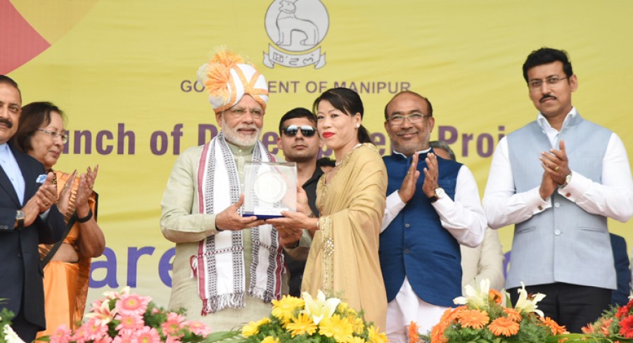 प्रधानमंत्री ने कहा कि पूर्वोत्तर क्षेत्र भारत के विकास का नया ईंजन हो सकता है, जिसके लिए केंद्र सरकार विशेष ध्यान दे रही है। उन्होंने कहा कि सरकार ने पूर्वोत्तर क्षेत्र में बुनियादी संरचना में सुधार पर काफी बल दिया है। उन्होंने कहा कि पर्यटन के क्षेत्र में भी मणिपुर के पास बहुत कुछ है-वन और वन्य जन्तु, नीली पहाड़ियां, हरी-भरी घाटियां, खूबसूरत चाय बागान और विविध संस्कृति। उन्होंने कहा कि यहां उच्च शिक्षा प्राप्त अंग्रेजी बोलने वाले युवा मणिपुर को एक आदर्श पर्यटन स्थल के रूपमें विकसित कर सकते हैं। उन्होंने गुफा पर्यटन परियोजना और चीरीयाओ चिंग में एक ईको पर्यटन की भी आधारशिला रखी, जो इम्फाल के नजदीक एक लोकप्रिय स्थल है। प्रधानमंत्री ने ढांचागत संवाद तथा लोक शिकायतों के समाधान सहित राज्य सरकार की नागरिक केंद्रित पहलों की सराहना की। इस अवसर पर मणिपुर की राज्यपाल डॉ नजमा हेपतुल्ला, मुख्यमंत्री एन बिरेन सिंह, राज्यमंत्री डॉ जितेंद्र सिंह और युवा मामलों एवं खेल राज्यमंत्री कर्नल राज्यवर्धन सिंह राठौर भी मौजूद थे।