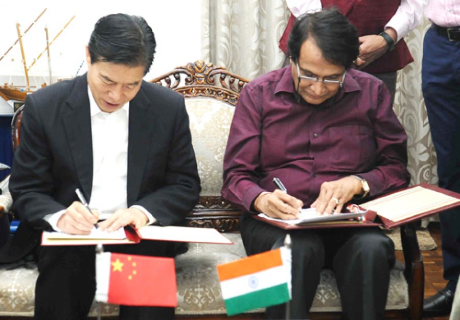 सुरेश प्रभु और झोंग शान ने किए सहमतिपत्र पर हस्ताक्षर