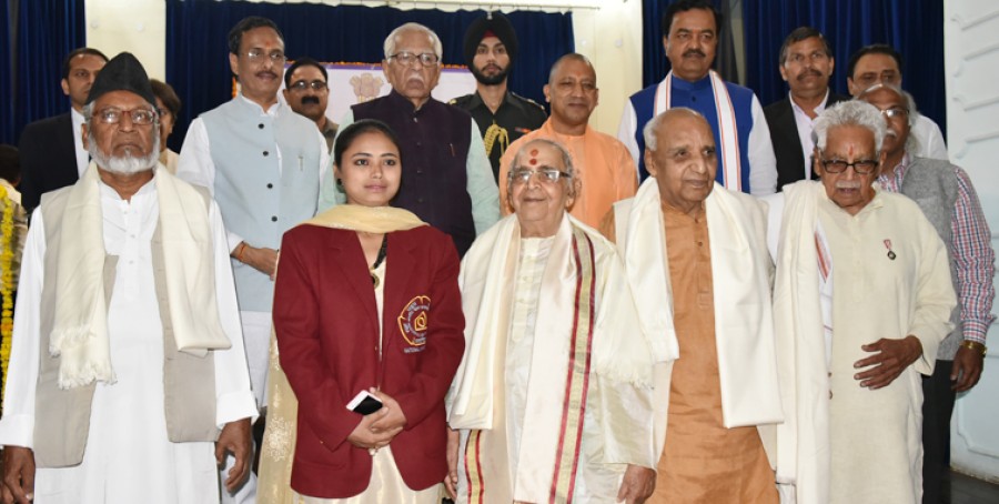 राज्यपाल राम नाईक ने कहा कि पद्म सम्मान कार्यक्रम दिल्ली में होता है, मगर अपने प्रदेश में सत्कार का विशेष महत्व है। उन्होंने कहा कि काम बहुत लोग करते हैं, मगर उनको पहचानना और चयनित करना मुश्किल काम होता है। उन्होंने कहा कि इस वर्ष प्रदेश के तीन महानुभावों को पद्म सम्मान हेतु चयनित किया गया था, किंतु बाबा योगेंद्र का नाम त्रुटिवश मध्य प्रदेश से दर्शाया गया था, जबकि वे भी उत्तर प्रदेश के निवासी हैं। पहले तीन महानुभावों का सम्मान होना था, लेकिन जानकारी होने के बाद राष्ट्रपति भवन से वार्ता उपरांत बाबा योगेंद्र को भी सम्मानित करने का निर्णय लिया गया। उन्होंने कहा कि चारों महानुभावों ने प्रदेश का नाम रौशन किया है। राम नाईक ने पद्मश्री से सम्मानित बाबा योगेंद्र, मोहनस्वरूप भाटिया, भागीरथ प्रसाद त्रिपाठी, अनवर जलालपुरी और राष्ट्रीय वीरता पुरस्कार प्राप्त करने वाली छात्रा नाजिया का अभिनंदन करते हुए उनके व्यक्तित्व पर प्रकाश डाला।