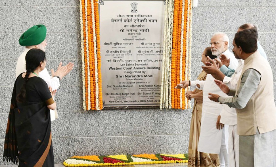 नई दिल्ली। प्रधानमंत्री नरेंद्र मोदी ने नई दिल्‍ली में सांसदों के लिए वेस्‍टर्न कोर्ट एनेक्‍सी में नवनिर्मित अस्‍थायी निवास का उद्घाटन करते हुए कहा है कि यह भवन सांसदों को अस्‍थायी निवास प्रदान करेगा। प्रधानमंत्री ने इस अवसर पर परियोजना को पूरा करने में लोकसभा अध्‍यक्ष सुमित्रा महाजन के प्रयासों की सराहना की। उन्‍होंने कहा कि सुमित्रा महाजन हमेशा सांसदों की भलाई के प्रति तत्पर रहती हैं, उन्‍होंने इस परियोजना पर विशेष ध्‍यान दिया, जिससे उनका विशेष सरोकार दृष्टिगत होता है। प्रधानमंत्री ने कहा कि यह परियोजना निर्धारित समय और लागत में पूरी हुई है, इस परियोजना के निर्माण में लगे सभी व्‍यक्तियों को बधाई!