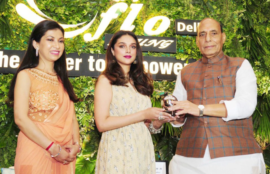 rajnath singh giving away the young women achievers awards