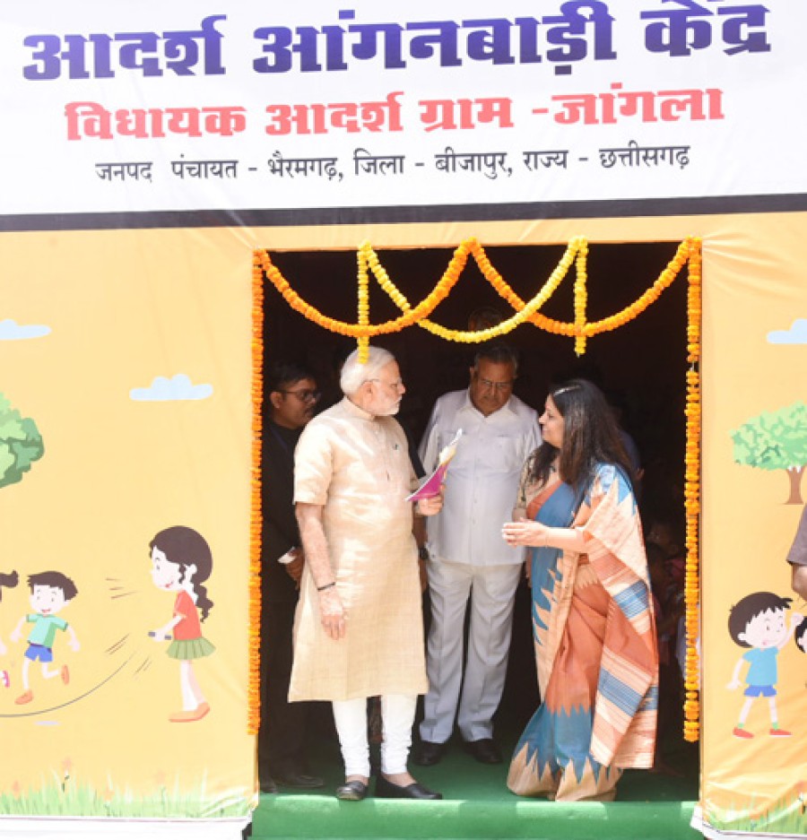प्रधानमंत्री नरेंद्र मोदी ने कहा कि आयुष्मान भारत का अगला लक्ष्य चिकित्सकीय इलाज के लिए ग़रीबों को पांच लाख रुपये तक की वित्तीय सहायता उपलब्ध कराना है। नरेंद्र मोदी ने छत्तीसगढ़ के मुख्यमंत्री डॉ रमन सिंह की राज्य में 14 वर्ष के दौरान किए गए विकास कार्यों के लिए सराहना की। उन्होंने लोगों को विकास हब में कई विकासात्मक पहलों की जानकारी दी। उन्होंने एक मॉडल आंगनवाड़ी केंद्र का दौरा किया, जहां वे आंगनवाड़ी कार्यकर्ताओं तथा पोषण अभियान के लाभार्थी बच्चों से मिले। उन्होंने हाट बाज़ार कियोस्क का भ्रमण किया एवं स्वास्थ्य कार्यकर्ताओं से मुलाकात की। प्रधानमंत्री ने जांगला में एक बैंक शाखा का उद्घाटन किया और चुने हुए लाभार्थियों को मुद्रा योजना के तहत ऋण मंजूरी पत्रों का वितरण किया। उन्होंने ग्रामीण बीपीओ कर्मचारियों से भी बातचीत की। प्रधानमंत्री ने यहां वन धन योजना लांच की, जिसका उद्देश्य जनजातीय समुदायों को सशक्त बनाना है। वीडियो कांफ्रेंसिंग के जरिए उन्होंने भानुप्रतापपुर-गुडम रेललाइन को राष्ट्र को समर्पित किया। उन्होंने वामपंथ उग्रवाद प्रभावित क्षेत्रों में 1988 किलामीटर पीएमजीएसवाई सड़क के निर्माण, बीजापुर में जलापूर्ति योजना एवं दो पुलों का शिलान्यास भी किया।