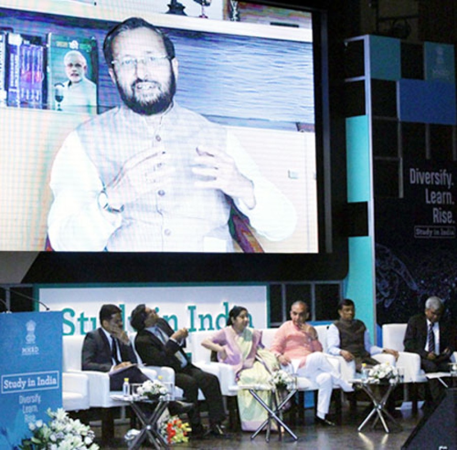 विदेश मंत्री सुषमा स्वराज ने कहा कि ज्ञान की इच्छा भारत की संस्कृति और सभ्यता के मूल में रही है, अपने पूरे इतिहास में भारत ने मानव विचार, दर्शन और विकास में अत्यंत महत्वपूर्ण योगदान किया है। उन्होंने कहा कि हमारी प्राचीन दार्शनिक अवधारणा जैसे वसुधैव कुटुंबकम और सर्व धर्म समभाव अनंत बनी हुई हैं। सुषमा स्वराज ने कहा कि यह लक्ष्य प्रणालीबद्ध तरीके से ब्रांड बनाकर विद्यार्थियों के लिए गुणवत्ता संपन्न संस्थानों की पहचान करके और समुचित संरचना निर्माण करने से ही हासिल किया जा सकेगा। उन्होंने कहा कि ‘स्टडी इन इंडिया’ पोर्टल विदेशी विद्यार्थियों के लिए भारत में अध्ययन से संबंधित सभी पहलुओं को कवर करने वाली एकल खिड़की है। मानव संसाधन विकास मंत्री प्रकाश जावड़ेकर ने इस अवसर पर वीडियो संदेश में कहा कि स्टडी इन इंडिया पहल विदेशी विद्यार्थियों के लिए भारत के जाने-माने शिक्षण संस्थानों के दरवाजे खोलेगी। उन्होंने कहा कि प्रारंभ में 30 एशियाई, अफ्रीकी, मध्य पूर्व तथा स्वतंत्र देशों के राष्ट्रमंडल देशों के विद्यार्थियों पर फोकस किया गया है। उन्होंने आशा व्यक्त की कि एक दिन अमेरिका में रह रहे परिवार अपने बच्चों को स्नातक स्तर के पाठ्यक्रमों के लिए भारत भेजेंगे।