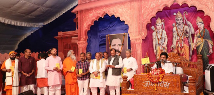 अयोध्या के महंत रामविलास वेदांती ने श्रीराम मंदिर निर्माण हेतु श्रीराम कथा को अद्भुत संयोग बताते हुए कहा कि जो माता-पिता की इच्छा को सर्वोपरि मानकर उनकी इच्छापूर्ति के लिए कार्य करते हैं, ऐसे संस्कारवान लोगों पर ईश्वर विशेष कृपा करते हैं। उन्होंने कहा कि वे वर्षों से भगवान श्रीराम के मंदिर निर्माण के लिए संकल्पित हैं और यह संकल्प अब शीघ्र पूर्ण होगा, इसके लिए चाहे कुछ भी करना पड़े। देश के विभिन्न राज्यों से पधारे गणमान्य लोगों ने श्रीराम कथा आयोजक सतीश वैष्णव का स्वागत-सम्मान किया। सतीश वैष्णव ने अपने उद्बोधन में स्वामी चिदानंद सरस्वती, कथा व्यास मुरलीधर, राज्य के वरिष्ठ मंत्री सुरेश खन्ना, महंत रामविलास वेदांती और अतिथियों का धन्यवाद किया।