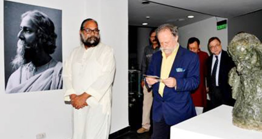 नई दिल्ली। रविंद्रनाथ टैगोर की जयंती पर राष्ट्रीय आधुनिक कला संग्रहालय नई दिल्ली में एक प्रदर्शनी का आयोजन किया गया, जिसमें प्रदर्शनी का शीर्षक गुरूदेव दी जर्नी ऑफ द मेस्ट्रो था। प्रदर्शनी का उद्घाटन भारत में अर्जेंटीना के राजदूत डेनियल चुबरू, अमरीकी दूतावास में लोक मामलों के मंत्री के परामर्शदाता जेफरी सेक्सटोन, हंगरी दूतावास के सूचना एवं संस्कृति केंद्र में निदेशक और सांस्कृतिक परामर्शदात प्रोफेसर डॉ जोल्टन विलियम, चीनी दूतावास के सांस्कृतिक परामर्शदाता शी झांग जियांसिन, मेक्सिको दूतावास के सांस्कृतिक परामर्शदाता सेंटियाग रूय सेंजेज, स्पेनिश सांस्कृतकि संस्थान के कार्लोस वरोना ने किया था।
