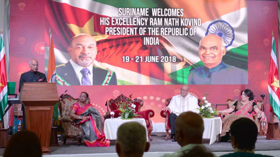 गौरतलब है कि राष्ट्रपति रामनाथ कोविंद तीन देशों ग्रीस, सूरीनाम और क्यूबा की आठ दिवसीय यात्रा पर हैं, वे सूरीनाम पहुंचे जहां वे सूरीनाम की राजधानी पारामारिबो में अंतर्राष्ट्रीय योग दिवस कार्यक्रमों में शामिल हुए। ज्ञातव्य है कि सूरीनाम की 33 प्रतिशत आबादी भारतीय मूल के लोगों की है। सुना गया था कि भारत और सूरीनाम में स्वास्थ्य और सूचना प्रौद्योगिकी के क्षेत्र में कुछ समझौते हो सकते हैं, लेकिन ऐसी कोई जानकारी सामने नहीं आई। राष्ट्रपति रामनाथ कोविंद ने यहां विवेकानंद संस्कृति केंद्र की आधारशिला जरूर रखी। राष्ट्रपति की सूरीनाम यात्रा इस बात को लेकर काफी चर्चा में है कि वे जब सूरीनाम गए हैं, तब वहां के राष्ट्रपति डिजायर डेलानो बौटर्से कानून के द्वारा सजायाफ्ता हैं।