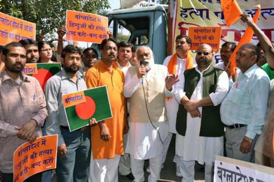 बांग्लादेश में हिंदू समाज पर लगातार प्रहारों से छुब्ध विश्व हिंदू परिषद ने जंतर-मंतर पर जमकर प्रदर्शन करते हुए भारत के राष्ट्रपति को ज्ञापन दिया। इस अवसर पर विहिप के राष्ट्रीय प्रवक्ताप्रकाश शर्मा एडवोकेट ने कहा कि हिंदुओं पर हमलों की बात आते ही आखिर हमारी सरकारें आंख व कान मूंद कर क्यों बैठ जाती हैं, बड़े पैमाने पर बांग्लादेश में हिंदुओं पर हमले हुए और हजारों हिंदू वहां से पलायन को मजबूर हैं, किंतु बेहद दुर्भाग्य पूर्ण है कि हमारे राष्ट्रपति की तीन दिवसीय बांग्लादेश यात्रा कल ही समाप्त हुई है और वे भी इस गंभीर विषय पर मौन रहे।