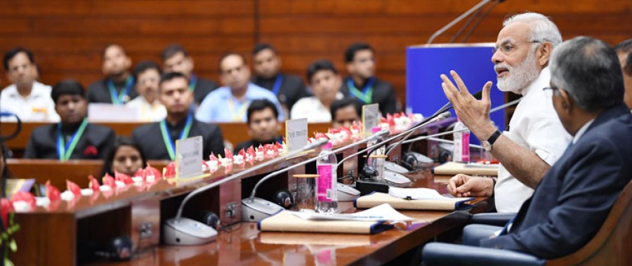 नई दिल्ली। प्रधानमंत्री नरेंद्र मोदी से दिल्ली में एक कार्यक्रम में 170 से अधिक आईएएस अधिकारियों ने मुलाकात की। इन्हें हाल ही में भारत सरकार में सहायक सचिवों के रूपमें नियुक्त किया गया है। प्रधानमंत्री ने उन्हें फील्ड प्रशिक्षण के अपने अनुभवों को साझा करने के लिए प्रोत्साहित किया। उन्होंने उनके साथ जन भागीदारी, सूचना प्रवाह, संसाधनों का इष्टतम उपयोग एवं शासन में लोगों के विश्वास सहित अच्छे शासन के तत्वों पर चर्चा की। प्रधानमंत्री ने अधिकारियों से ग्राम स्वराज अभियान, आकांक्षी जिलों और आयुष्मान भारत जैसी शासन की पहलों पर चर्चा की, जिन्हें इस वर्ष के कार्यक्रम में शामिल किया जा रहा है।