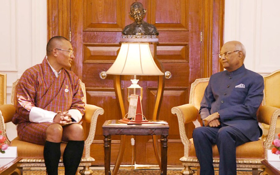 नई दिल्ली। भूटान के प्रधानमंत्री शेरिंग तोबगे ने राष्ट्रपति भवन नई दिल्ली में राष्ट्रपति रामनाथ कोविंद से भेंट की। इस अवसर पर भूटान के प्रधानमंत्री का भारत में स्वागत करते हुए राष्ट्रपति ने कहा कि भारत और भूटान एक आदर्श द्विपक्षीय भागीदारी साझा करते हैं और दोनों देशों के संबंध अनूठे और विशिष्ट हैं। उन्होंने कहा कि हमारे ऐतिहासिक और सांस्कृतिक संबंध हमें प्राकृतिक मित्र बनाते हैं। गौरतलब है कि भूटान भारत का एक ऐसा मित्र देश है, जो भारत के लिए सामरिक दृष्टि से अत्यंत महत्वपूर्ण और भरोसेमंद माना जाता है।