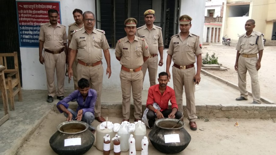 गोंडा। गोंडा जिले की वजीरगंज पुलिस ने क्षेत्र के गांव गढ़ी में छापेमारी कर 90 लीटर अवैध शराब बरामद की है और इस अवैध कारोबार में संलिप्त दो लोगों राजकुमार सोनकर और राजेश यादव को गिरफ्तार किया है। वजीरगंज पुलिस थाना प्रभारी मनोज कुमार ने बताया मुखबिर की सूचना पर यह कार्रवाई हुई, जिसमें उनके निर्देशन में उनकी पुलिस पार्टी ने क्षेत्र के ग्राम गढ़ी में रविवार की शाम दबिश देकर अवैध शराब व्यवसाय को ध्वस्त करते हुए इसमें संलिप्त राजकुमार सोनकर और राजेश यादव को धर दबोचा। उन्होंने बताया कि उनके पास 90 लीटर शराब, 5 कुंतल लहन, शराब भट्टी मिली। पुलिस टीम में एसआई रामदरश यादव एसआई अंकुर वर्मा, दयाराम यादव, सभाजीत, अरुण यादव शामिल थे।