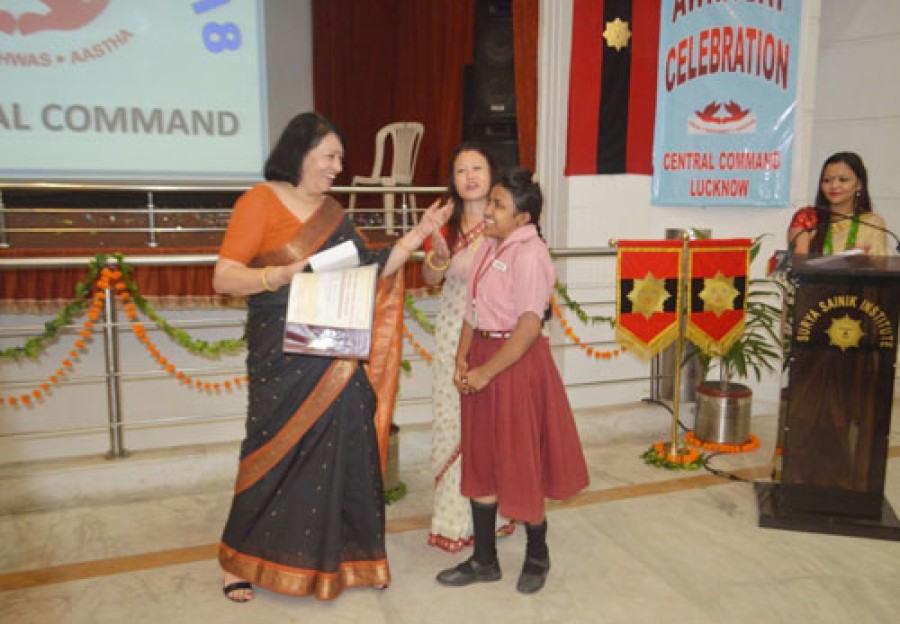 मध्य कमान सेना पत्नी कल्याण संघ ने आशा स्कूल के दिव्यांग बच्चों के सर्वांगीण विकास के लिए सेना, राज्य और केंद्र सरकार द्वारा दी जाने वाली सहायता के बारे में जानकारी दी। कार्यक्रम में मध्य कमान सेना पत्नी कल्याण संघ की कार्यकारी अध्यक्ष अनिता शर्मा ने उत्कृष्ट कार्य करने वाली आवा सदस्यों को सम्मानित किया। आवा अध्यक्ष ने 11वीं गोरखा राइफल्स सेंटर की निरुता लिम्बू, ग्रिनेडियर अभिलेख कार्यालय की मिस मनोहरा शर्मा, ग्रिनेडियर रेजिमेंटल सेंटर के मास्टर सतेंद्र प्रताप सिंह और आशा स्कूल के दिव्यांग बच्चों को आवा अवार्ड ऑफ एक्सीलेंस से नवाजा।